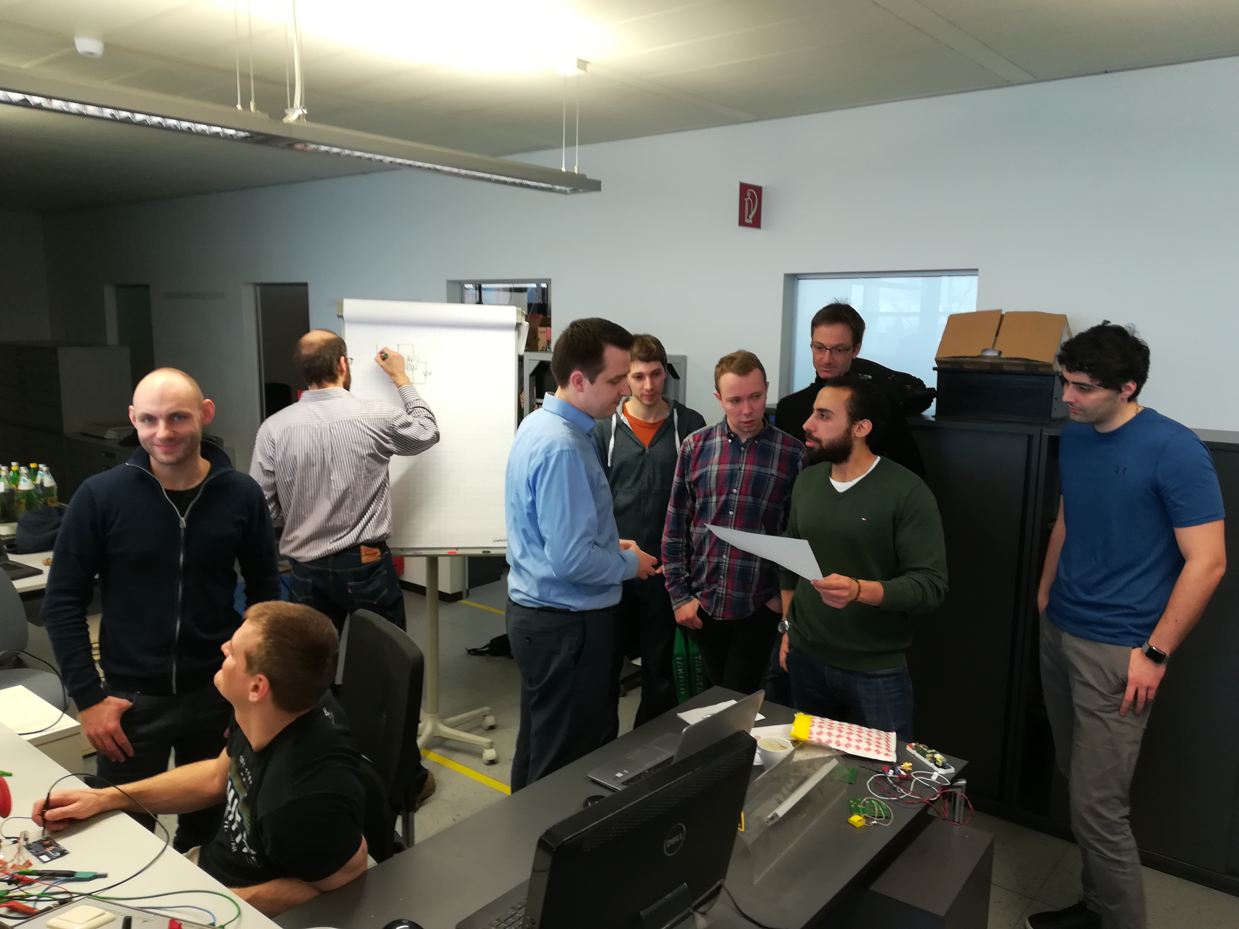 During this session the first physical prototypes of DC/DC, LVPS, DALI and Control were merged to a running system by NPC and TRI. Besides that, DTU showed a demonstrator for AC/DC-conversion with high efficiency. In a next step PFC-functionality should be included. This was intensively discussed on the flipchart in parallel to soldering and measuring and all project-partners from WP1-WP5 were involved. At lunch-time and begin of the official LEDLUM technical meeting there was LiL (Light in LED) and closed-loop regulation allowed smooth dimming. Although size- and cost-targets are not fully met with this early demonstrator it is an ideal base for further improvements of the concept and components.